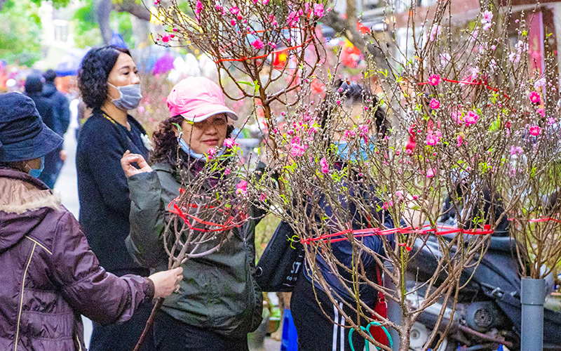 Năm nay, do ảnh hưởng của dịch Covid-19, mùa hoa Tết có phần thiếu đông vui, nhộn nhịp, nhưng không vì thế mà không khí xuân vắng bóng trong mỗi căn nhà. Ở các làng hoa nổi tiếng Hà Nội như: Quảng Bá, Tây Tựu… hàng trăm loại hoa truyền thống như: đào, mai, cúc, hồng, lay ơn, thược dược..., cho tới những loại hoa nhập từ nước ngoài đều tràn ngập, phục vụ nhu cầu trang trí, trưng bày của người dân trong dịp Tết Nguyên đán. Các hộ dân làm nghề trồng hoa cho biết, giá hoa năm nay đã "hạ nhiệt" so với vài năm trước và các mối nhập buôn cũng ít hơn cho nên nhà vườn xoay xở bằng cách mua chậu cảnh, trồng hoa vào để bán lẻ cho người dân. Khác với hoa cắm bình, hoa trồng chậu bền hơn, ngoài những bông hoa chính to đẹp, rực rỡ còn thêm nhiều nụ, chồi, lộc bung tỏa sức sống…