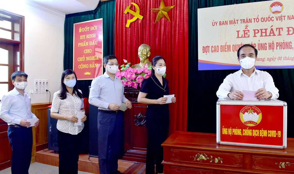 Đến nay (tính đến thời điểm 18/6/2021), các đơn vị, doanh nghiệp, cá nhân vấn tiếp tục ủng hộ chống dịch với số tiền trên 2,5 tỷ đồng, trong đó: cấp tỉnh trên 1,5 tỷ đồng; các cơ quan, đơn vị, trường học gần 600 triệu đồng; ngân hàng, doanh nghiệp gần 1 tỷ đồng; Mặt trận tổ quốc cấp huyện đã tiếp nhận trên 1 tỷ đồng; cá nhân, tập thể 20 triệu đồng.