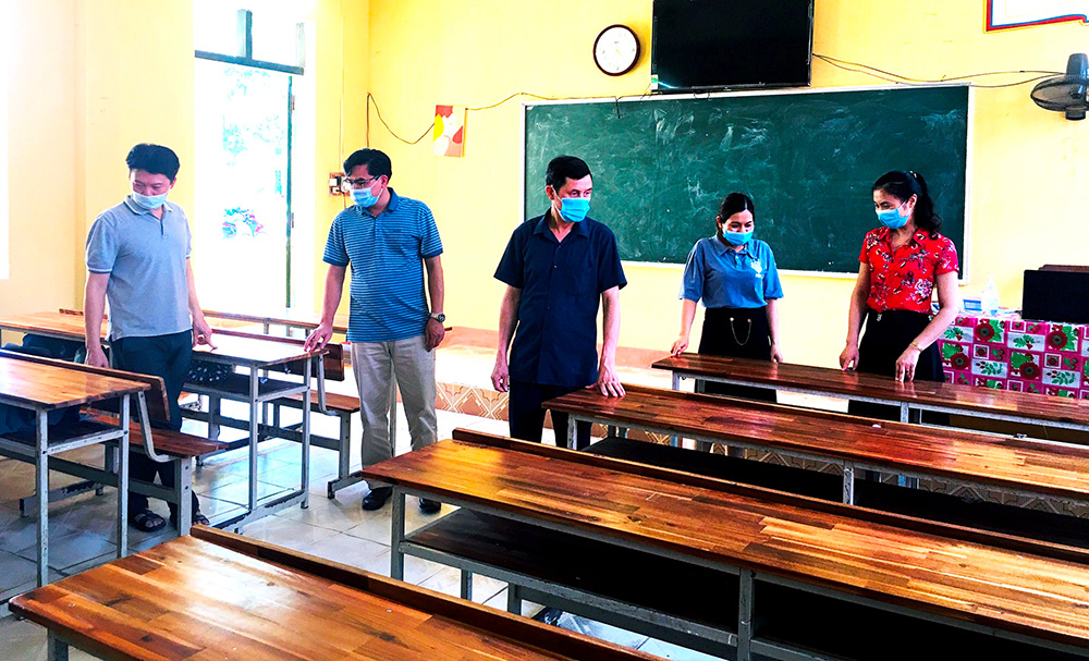 Cán bộ, giáo viên trường THPT Sơn Dương kiểm tra, rà soát cơ sở vật chất chuẩn bị cho kỳ thi tuyển sinh lớp 10.