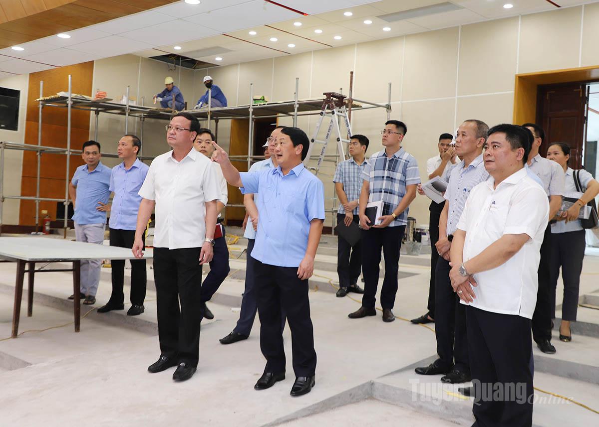 Đồng chí Bí thư Tỉnh ủy Hầu A Lềnh kiểm tra tiến độ cải tạo, nâng cấp Trung tâm Thông tin - Hội nghị, là địa điểm tỉnh chọn tổ chức đại hội. |